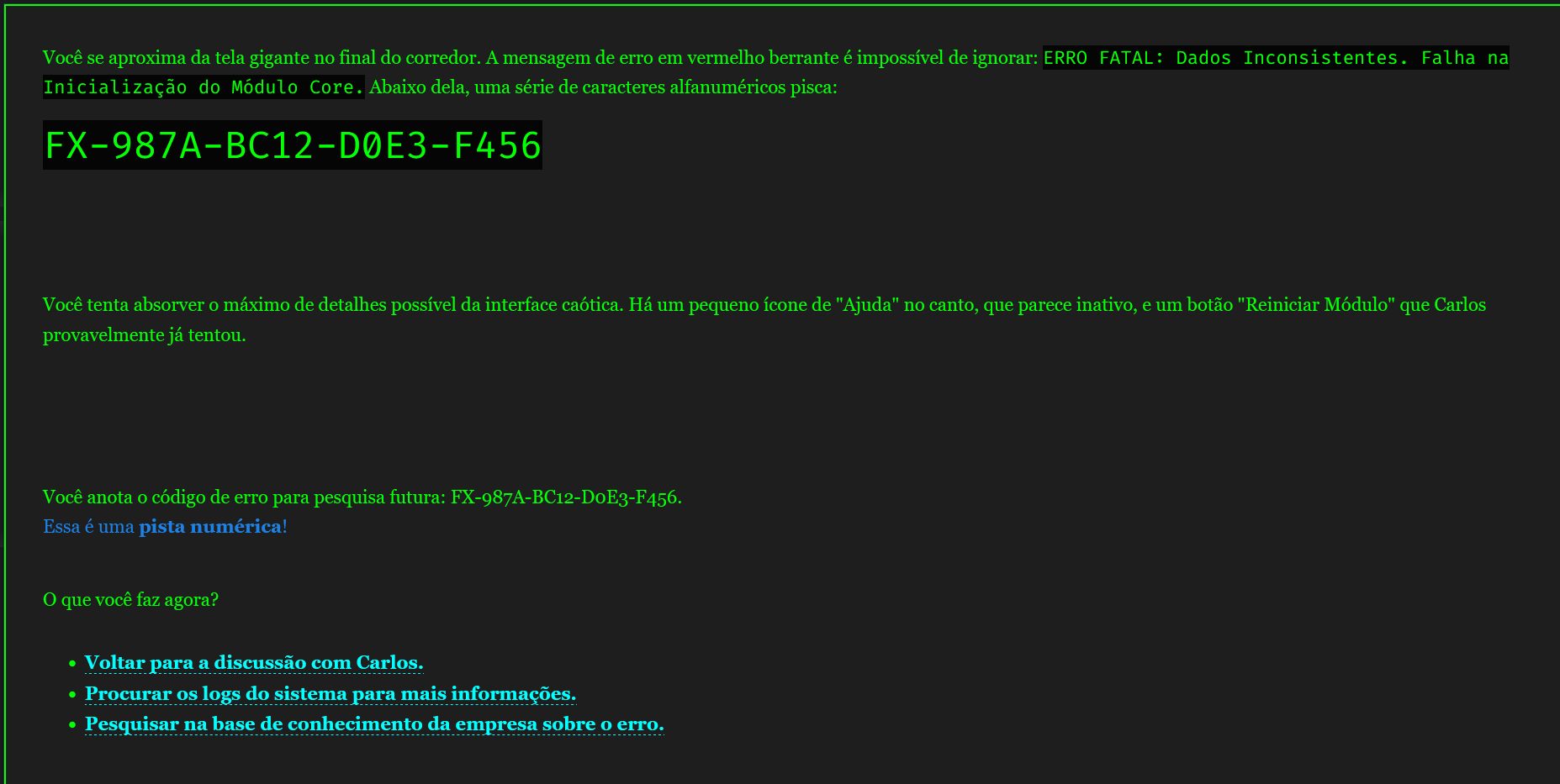 Jogo criado para apresentar recursos dos macros da linguagem Harlowe do Twine. Apresentado em workshop do evento GeekWeek do IFRS Campus Sertão.
