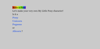 This was conceived as a test for integrating Google GenAI API with Twine. Used as a personal project (my daughter is in her MyLittlePony phase) and as an example in a programming workshop.